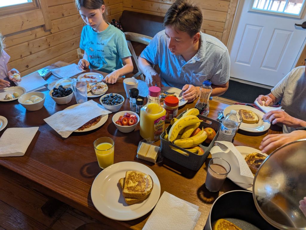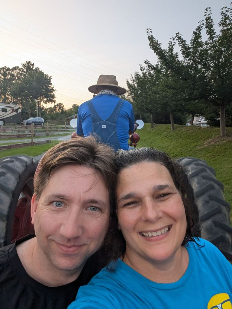 We went swimming and Nole and I took a tractor wagon ride over to my mom and Ray’s cabin where the kids were watching Harry Potter on their TV until it was time to hit the hay.