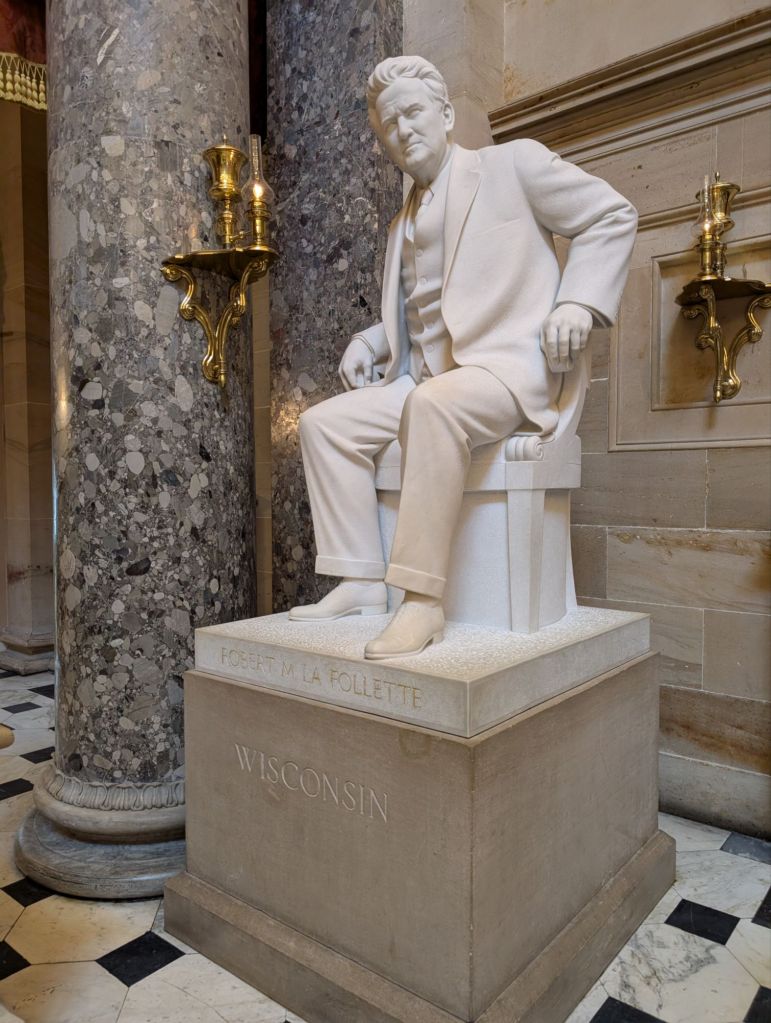 Each state can give two statues to the Capitol to be displayed there. This is one of Wisconsin’s, Robert La Follette.