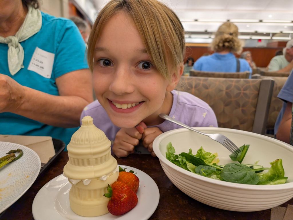After our tour, we had lunch in the Capitol Cafe. Nova got this white chocolate Capitol building for dessert.