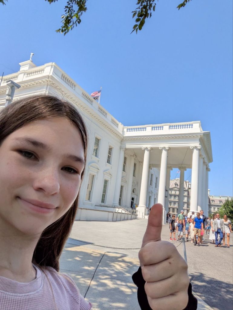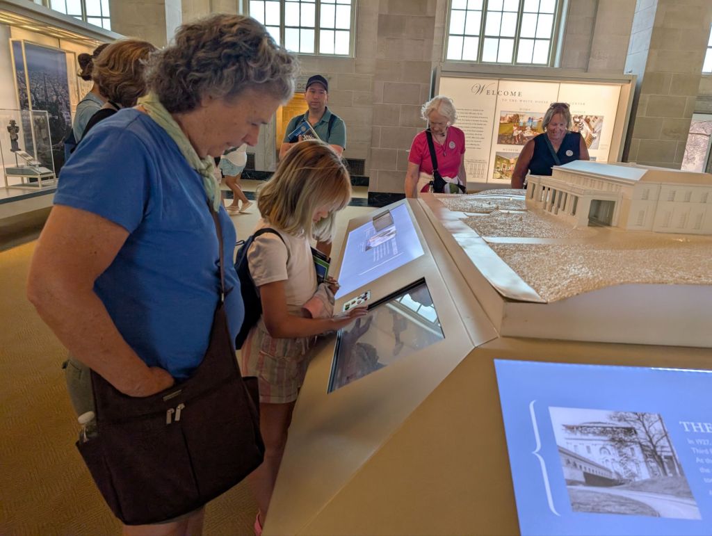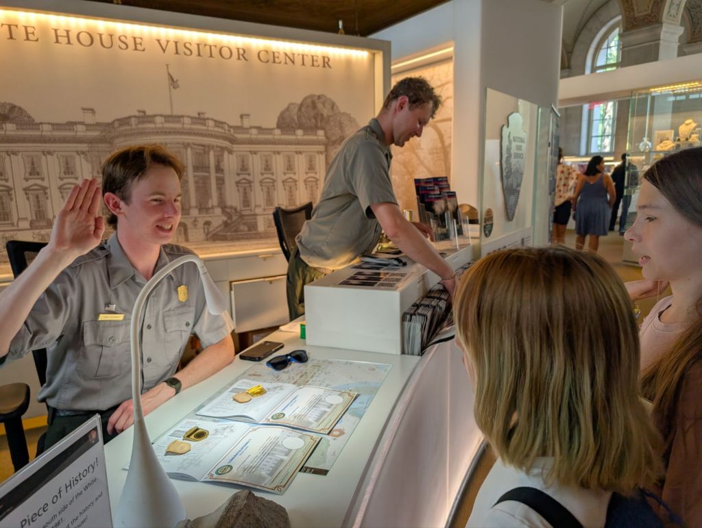 We got to the White House about an hour before our scheduled tour time. Nole and I took everyone’s bags since no bags are allowed inside. I was also not able to go on the White House tour because of a mistake months ago when we first signed up and submitted our personal information for vetting. All visitors need to be vetted months in advance and I accidentally forgot to sign myself up! Nole and I went to the White House visitor center where we helped the girls get a head start on their Junior Ranger booklets.