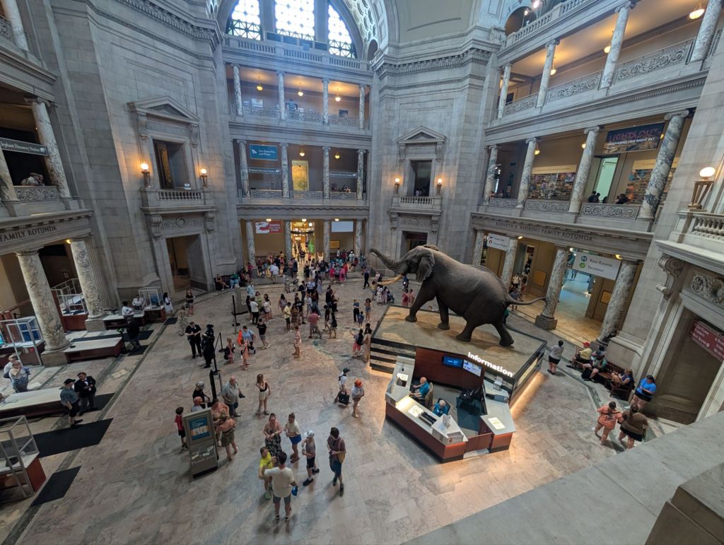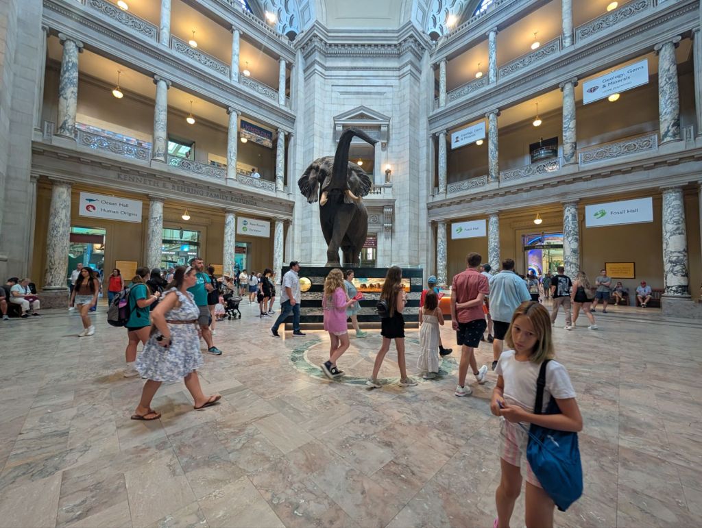 We went outside to catch the bus to the Smithsonian Air and Space Museum. You need to reserve tickets in advance and I thought I did but I didn’t get a confirmation email. Half were reserved to Nole, who no longer had his phone to pull up the tickets on either. So instead we decided to go to the Smithsonian Natural History Museum, which does not require tickets, instead.