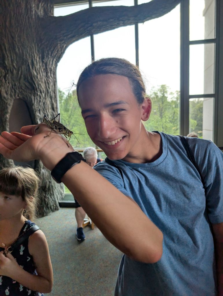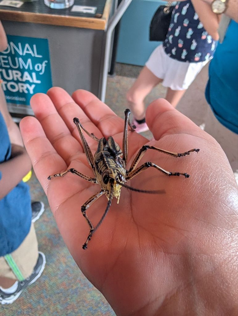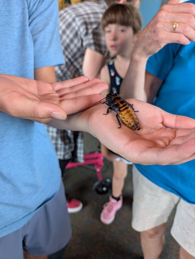 Asa and I were the only two brave enough to go into the Insect Zoo where we got to hold Madagascar cockroaches and lubber grasshoppers.