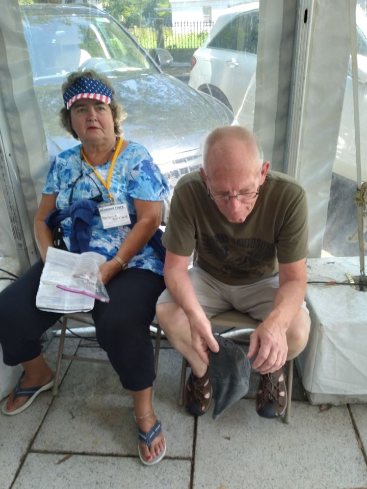 The others returned from their tour and the girls got their badges. The visitor center was informative, had a film, and best of all was highly air-conditioned!