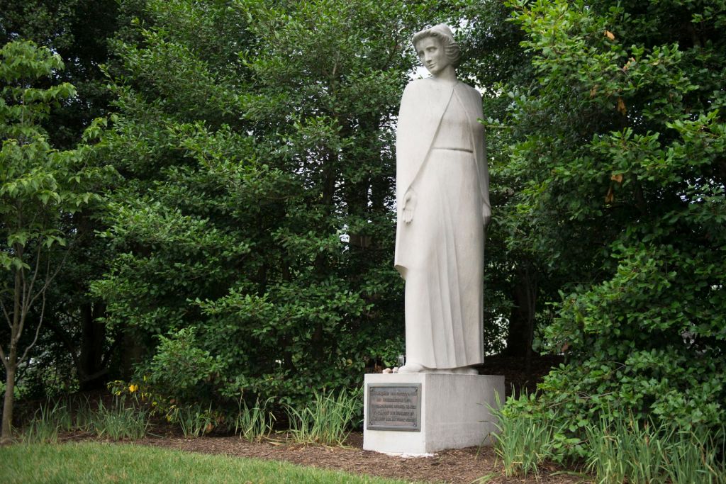 This is a statue of a nurse overlooking the area where WWII nurses are buried.