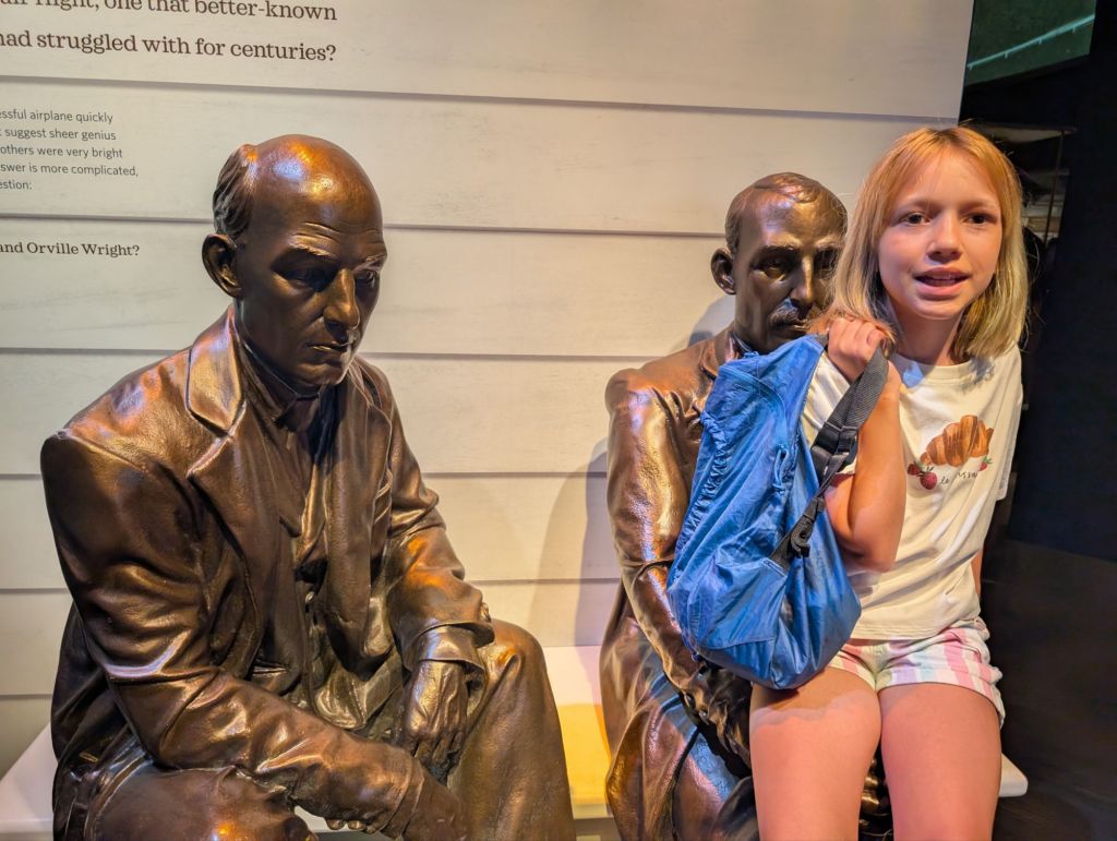 The real Wright brothers’ plane was here but looks like I didn’t get a picture of that. Here is Nova with the Wright Brothers. We read about their sister, Katherine. She spent a lot of time with the brothers and none of them married…until Katherine married at age 50. Her only living brother, Orville, did not approve and stopped speaking to her until her deathbed at age 54.