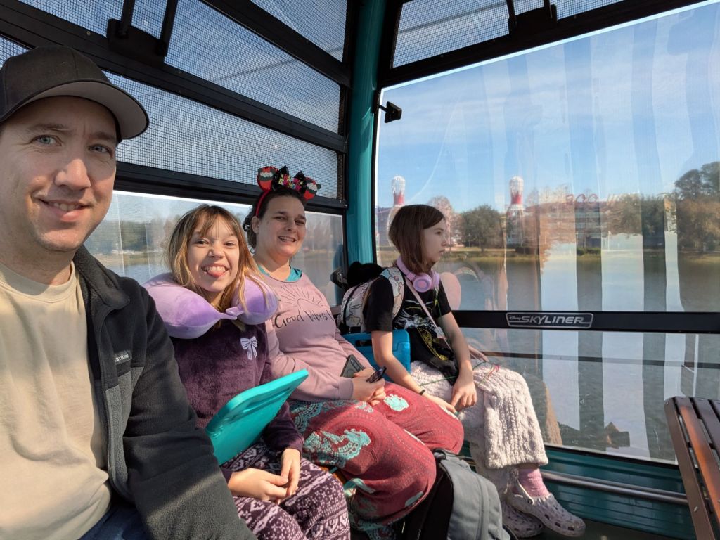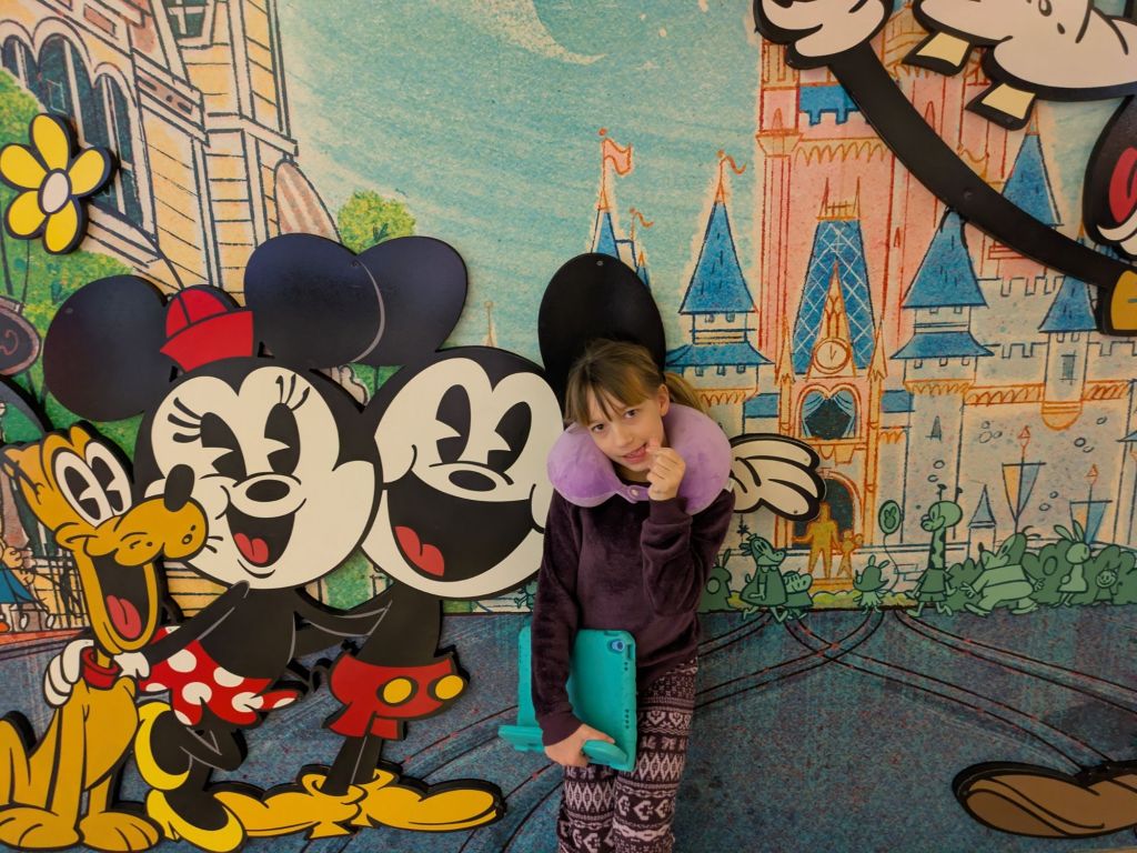 We woke up around 3 AM to get ready to leave for the airport for our flight to Orlando at 6. We booked the flight with points (the only part of this trip that involves the words “saving money” as anyone who has been to Orlando knows). We decided to fly rather than drive since there are only 4 of us going. The boys had school and weren’t super interested in going on this kind of trip.