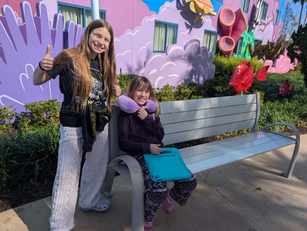 Normally, we drive to Florida (to save money) and stay at an Airbnb (to save money) but this time the convenience of staying on site and the fact that we were traveling with 4 rather than 6 or 7 (many past trips have included my mom) won out and we decided to stay at the resort. We’re looking forward to #1 warm weather (-2 degrees in Milwaukee when we left and -15 expected later this week, without wind chill) and #2 not having a car and just being chauffeured everywhere.