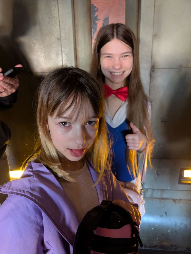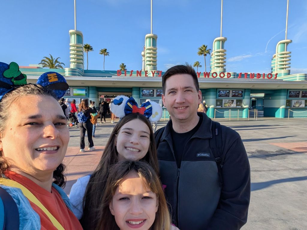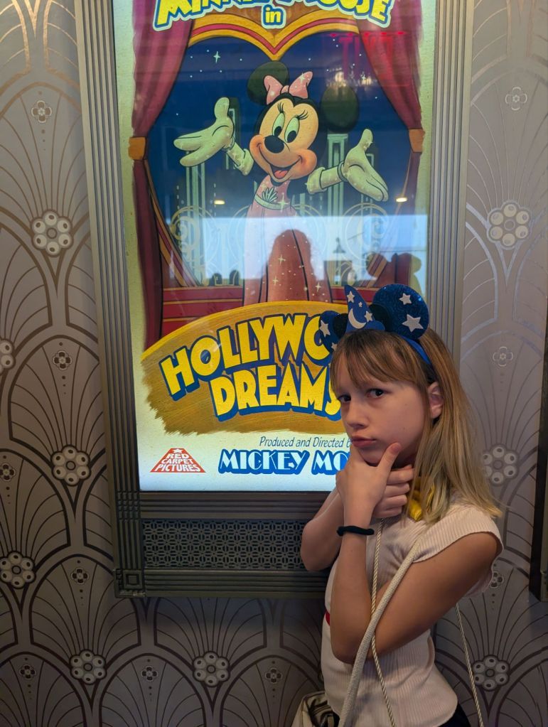 We left the hotel later than I would have liked but made it to the park entrance around the time they were opening. We rode Rise of the Resistance first. It’s a Star Wars ride and neither girl was super confident about going on it. It’s not a roller coaster but a “trackless ride” that combines live actors, video segments, and simulators. We read reviews and by the time we boarded, we had both girls convinced.