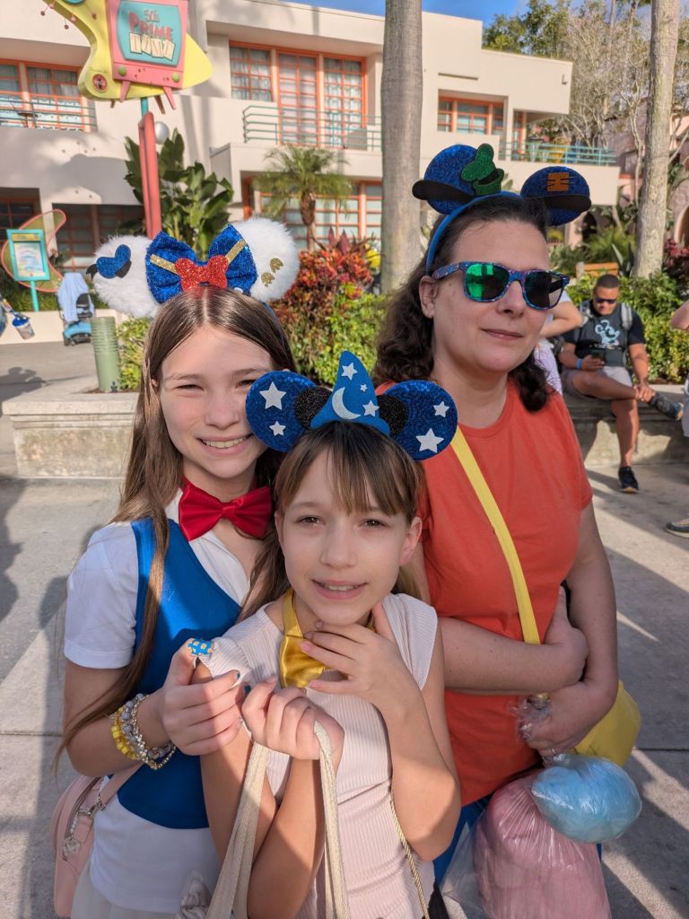 There were two “nighttime spectaculars” tonight. One was the Wonderful World of Animation, a nostalgic look back through some Disney classics projected on the side of a building. Esme caught a few winks waiting for it to start while Nole and Nova took advantage of a low wait time at Rise of Resistance to go on another ride. Yes, the same ride she had to be convinced to ride when we arrived. It can be hard to know when to push your kids to try something new and when to let it be. I knew the first ride would set the tone for the rest of our theme park visits this trip and I’m really glad she decided to try it this morning!