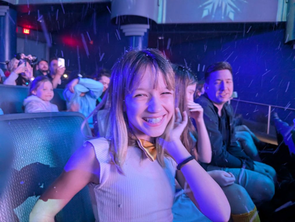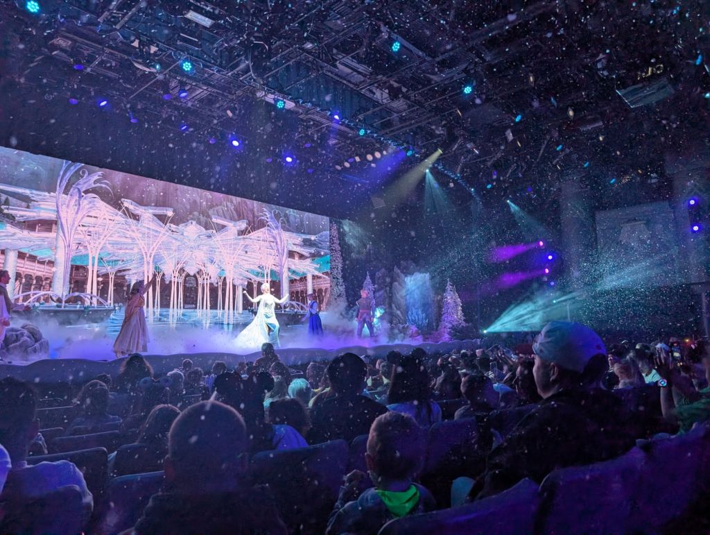 We went to the Frozen Sing-Along next. It “snows” indoors at the end!