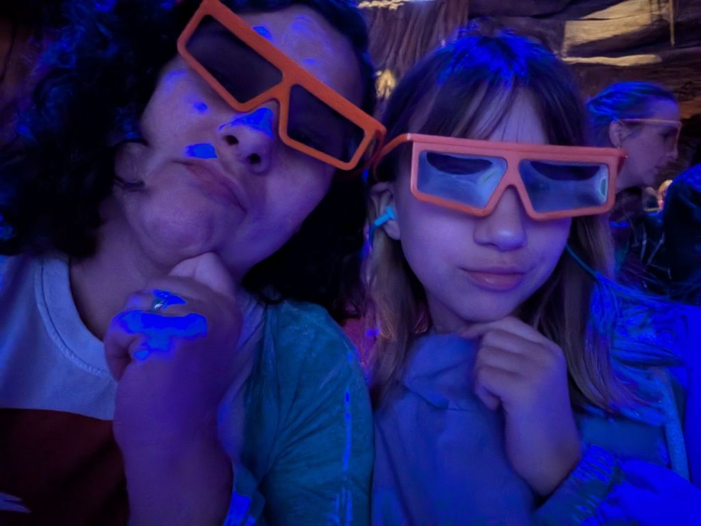 We went to DINOSAUR next. This ride is permanently closing February 1st to make way for a new area that will feature Indiana Jones and Encanto themed attractions. The girls liked it so much they wanted to go again but it’s a very jerky ride and it hurt my back the first time. They wouldn’t go alone though so I agreed to go again if I could sit in the middle (a slightly smoother ride). Nole gladly sat the second round out.