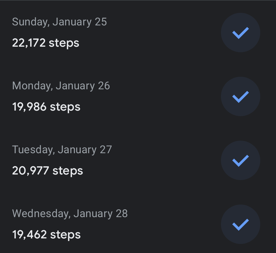 Here are my steps for this week.